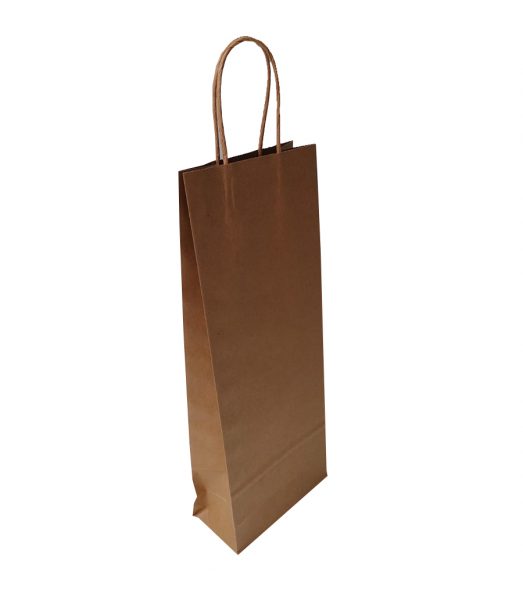 Bolsas de papel kraft gramaje de 100, ideal para botellas, con manilla trenzada de papel, resisten hasta 3 kilos, estas bolsas se pueden estampar.