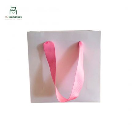 Bolsa de lujo blanca 13x13x5 con asa rosada $13.328 – $93.296 IVA Incl.